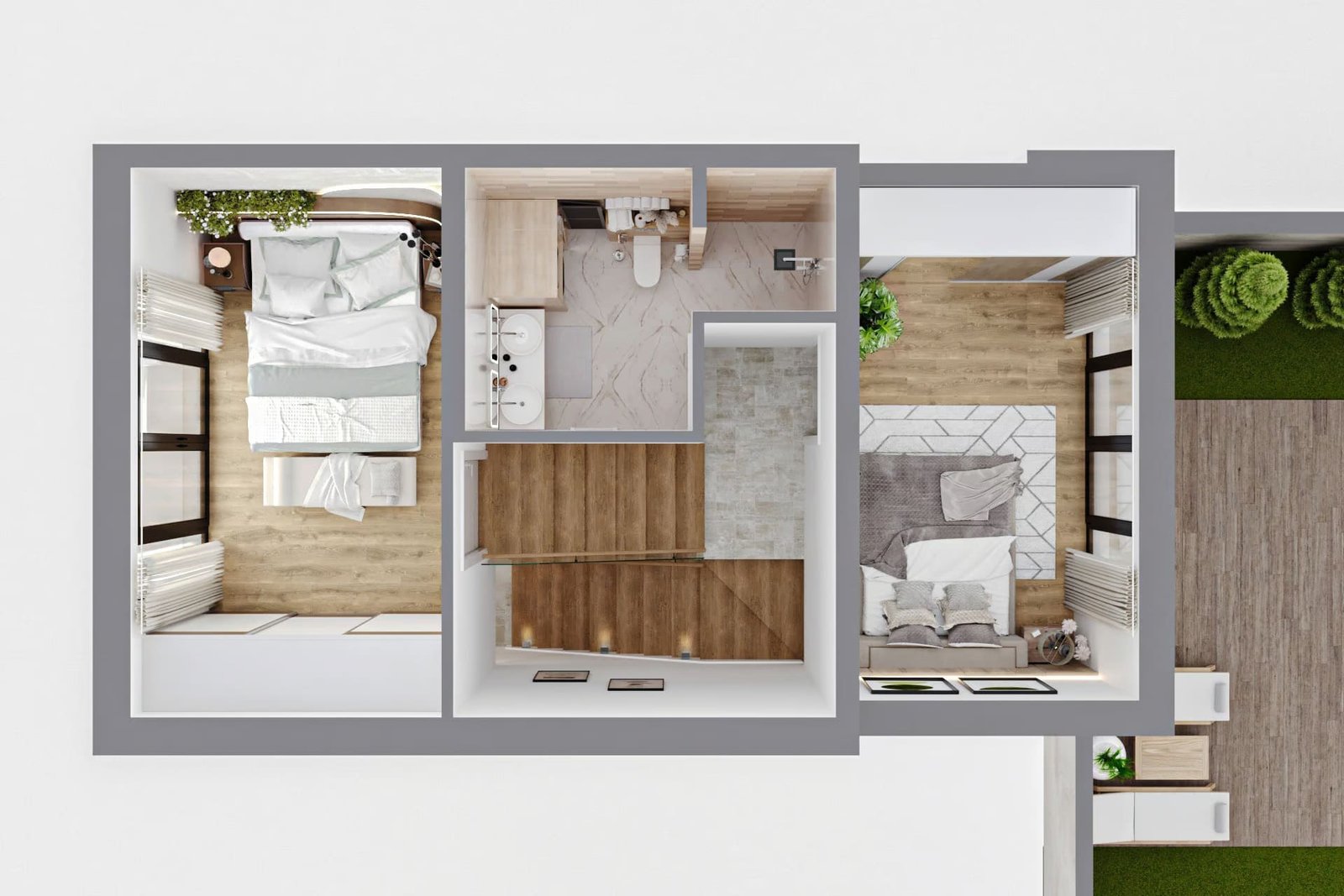 Parkinzi i prilazi u behaton pločama, trotoar oko kuće. Hortikultura, sadnja trave visokog kvaliteta. Bazeni su opcioni, sa ponudom na upit.