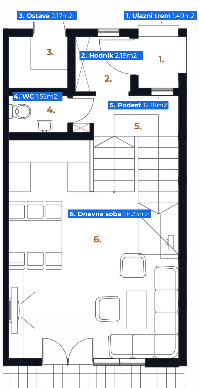 71 m2 podeljeno u dva nivoa